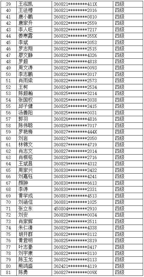 根據(jù)《江西省人力資源和社會(huì)保障廳關(guān)于遴選備案職業(yè)技能等級(jí)認(rèn)定社會(huì)培訓(xùn)評(píng)價(jià)組織的通知》(贛人社字(2020)302號(hào))、(贛人社字(2022)128號(hào))文件要求。按照《關(guān)于開展“互聯(lián)網(wǎng)+職業(yè)技能等級(jí)認(rèn)定”試點(diǎn)工作的通知》(贛人社字(2020)397號(hào))精神。我校于2024年11月25日開展了計(jì)算機(jī)及外部設(shè)備裝配調(diào)試員(計(jì)算機(jī)整機(jī)裝配調(diào)試員)等級(jí)認(rèn)定,共140人(四級(jí)),通過認(rèn)定考核128人?,F(xiàn)對(duì)認(rèn)定考核合格人員進(jìn)行公示(名單附后)。