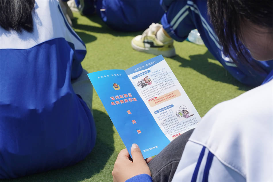 宣講間隙,民警們穿梭人群,將一份份圖文并茂的防詐宣傳單遞到學(xué)生手中。宣傳單上,各類詐騙方式用醒目標(biāo)題標(biāo)注,配合漫畫(huà)解析詐騙場(chǎng)景,成為同學(xué)們手中的“防詐指南”。