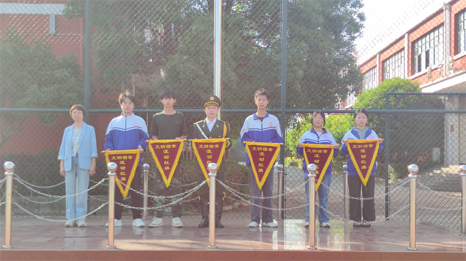 最后,學(xué)校領(lǐng)導(dǎo)為在上周表現(xiàn)優(yōu)異的班級和文明寢室頒發(fā)流動(dòng)紅旗。獲得榮譽(yù)的班級和寢室代表邁著自信的步伐走上領(lǐng)獎(jiǎng)臺,從領(lǐng)導(dǎo)手中接過象征榮譽(yù)的流動(dòng)紅旗,臉上洋溢著自豪的笑容。這不僅是對他們過去努力的肯定,更是激勵(lì)全體師生積極向上、爭創(chuàng)優(yōu)秀的強(qiáng)大動(dòng)力。