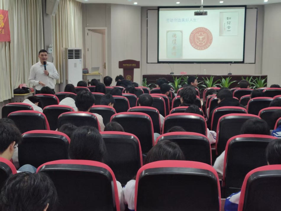 宣講環(huán)節(jié)中,勞動模范姚海彪結合自身三十余年的從業(yè)經歷,講述了從一名普通技術工人成長為行業(yè)領軍人物的奮斗歷程。他分享道,初入職場時,自己也曾因技術不熟練而受挫,但憑借 “不服輸、肯鉆研” 的勁頭,利用業(yè)余時間反復琢磨操作技巧,攻克了一個又一個技術難題,最終在制造業(yè)取得重大突破,獲得很多榮譽。“技能沒有捷徑,唯有腳踏實地、精益求精,才能在平凡的崗位上創(chuàng)造不平凡的價值。” 樸實的話語中蘊含著深刻的人生哲理,引發(fā)全場師生的強烈共鳴。
