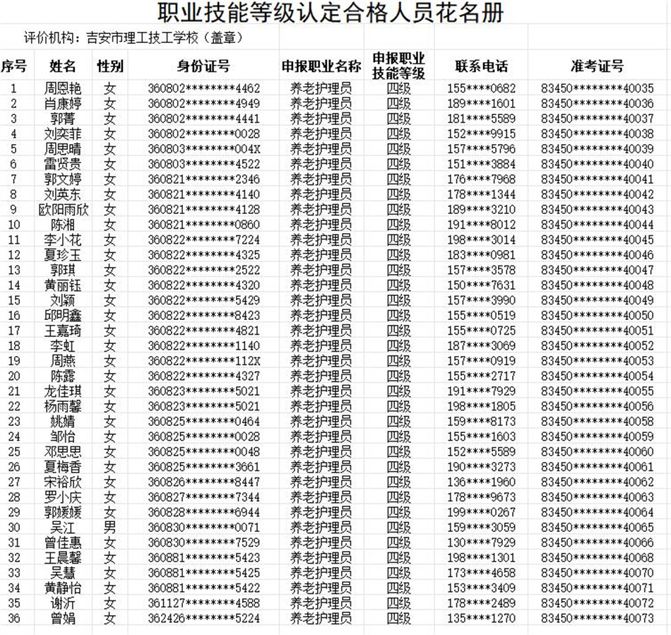 按照《贛人社規(guī)〔2022〕7號(hào)》文件精神。我校于2025年10月24日開(kāi)展了養(yǎng)老護(hù)理員等級(jí)認(rèn)定,共39人(四級(jí)),通過(guò)認(rèn)定考核36人?,F(xiàn)對(duì)認(rèn)定考核合格人員進(jìn)行公示。(名單附后)