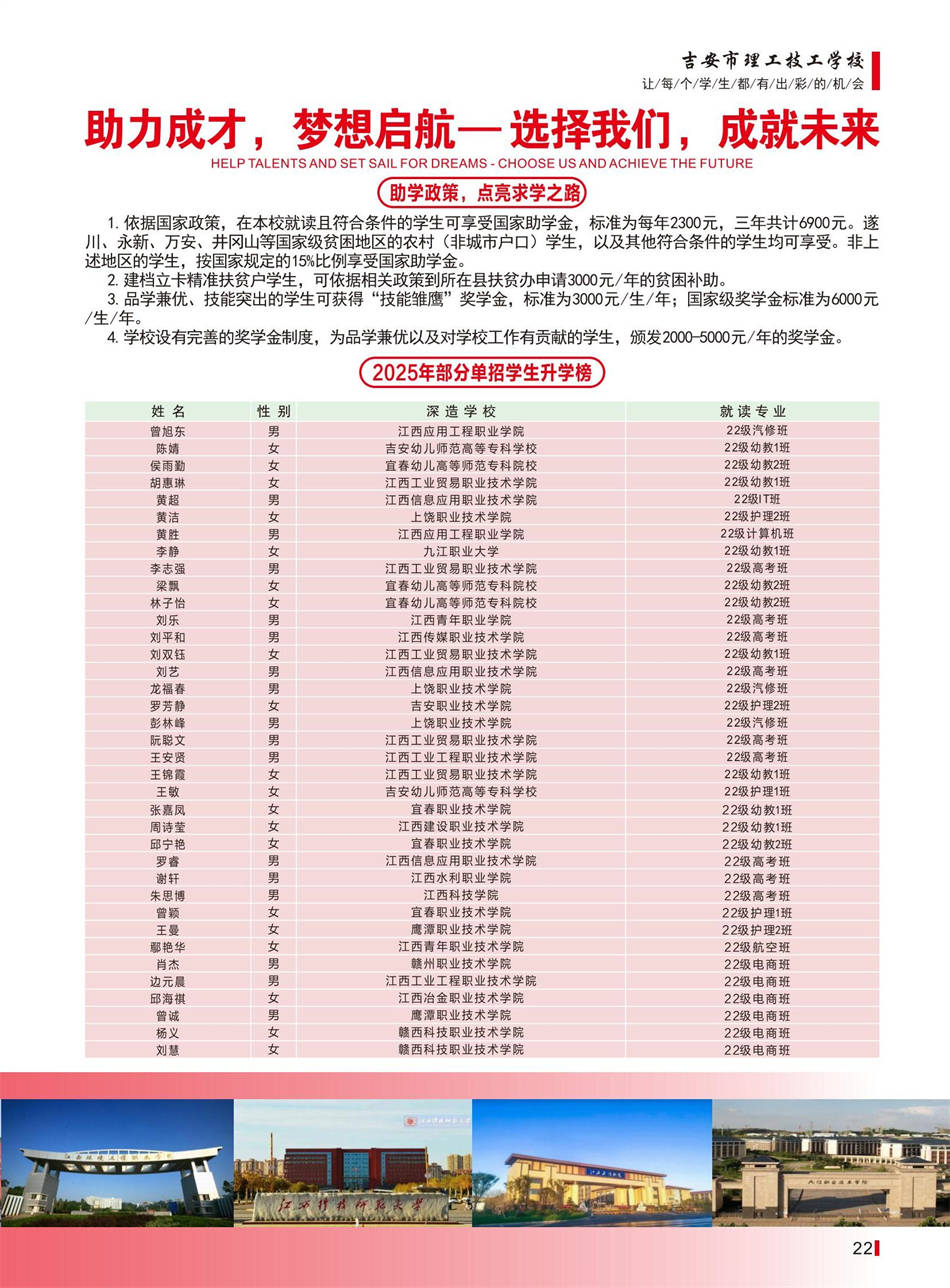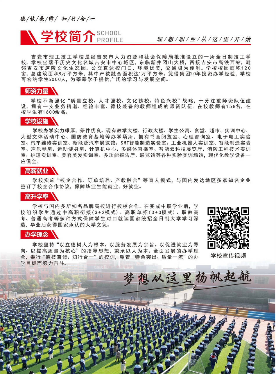 吉安市理工技工學校是經吉安市人力資源和社會保障局批準設立的一所全日制技工學校,學校代碼:126