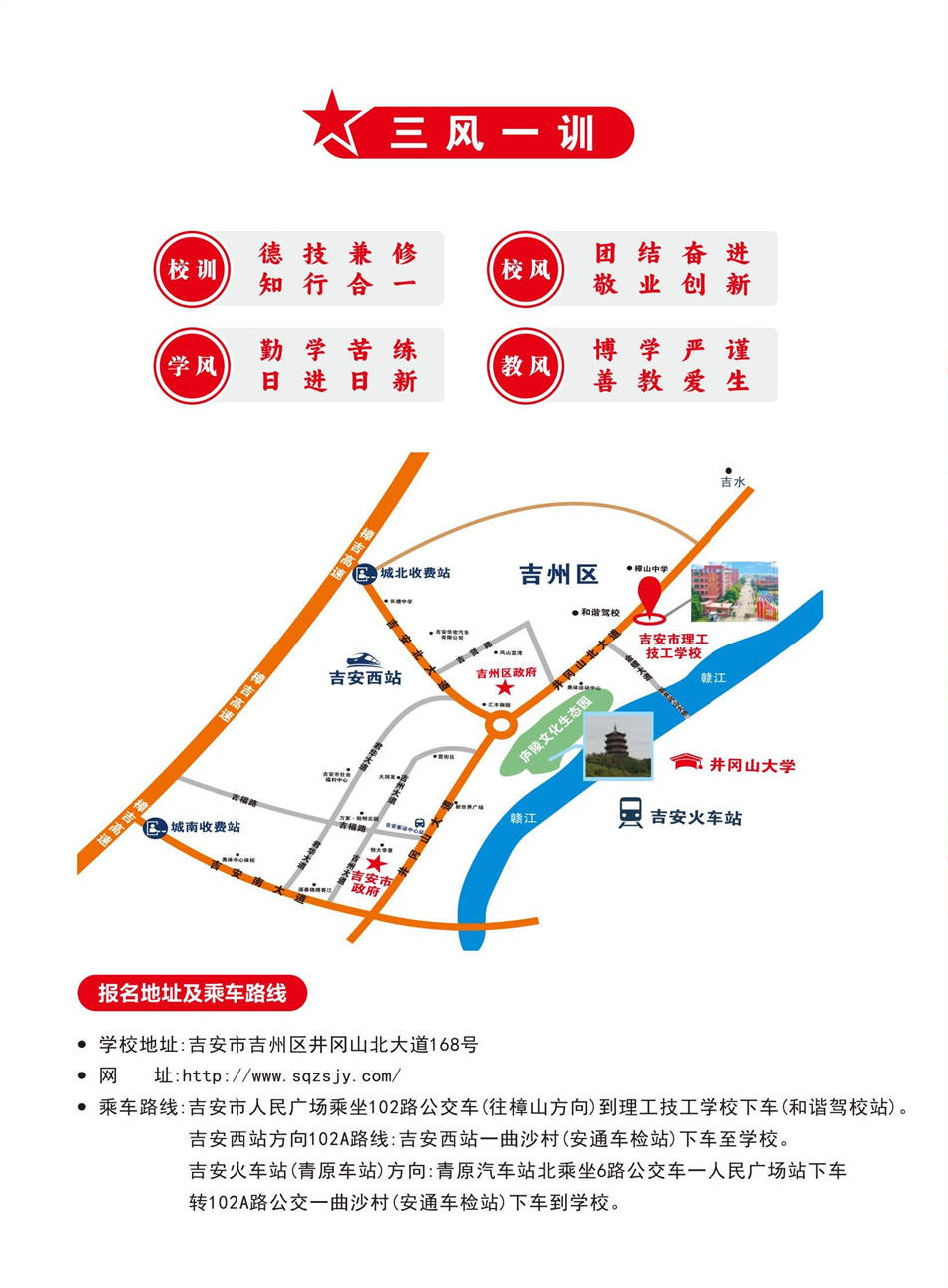 學校地址:吉安市吉州區(qū)井岡山北大道168號
