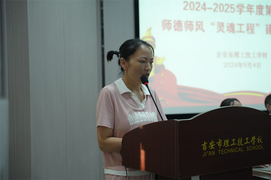 隨后,黨支部對本學(xué)期師德師風(fēng)“靈魂工程”建設(shè)實施方案進行了解讀;賴董事長帶領(lǐng)教職員工進行了《人民教師誓詞》宣誓儀式,并與教師代表簽定并了《吉安市理工技工學(xué)校師德師風(fēng)承諾書》;李亭燕、朱書敏作為優(yōu)秀教師代表進行了表態(tài)發(fā)言。