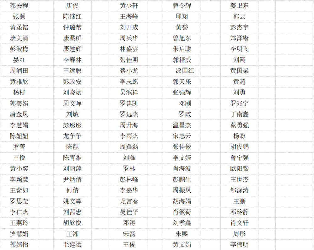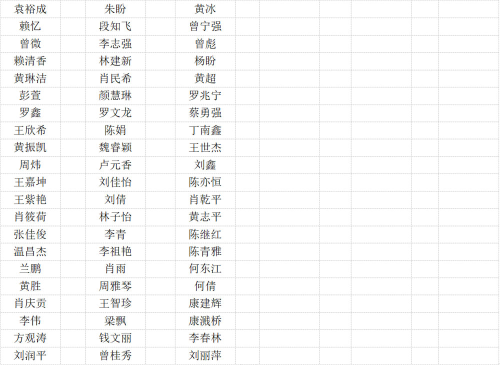 公示名單: