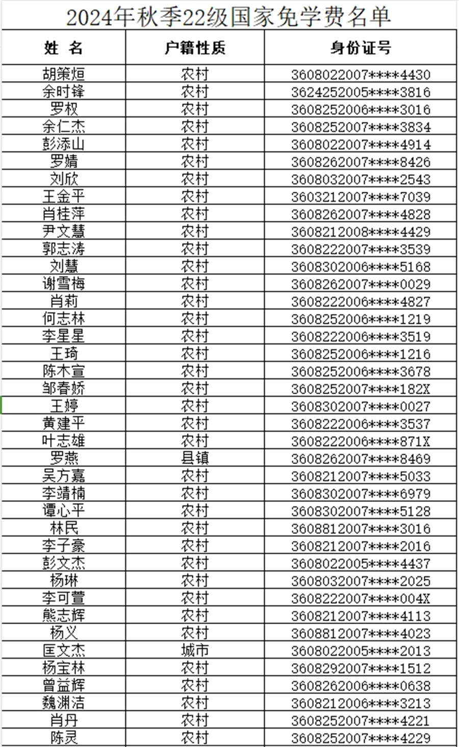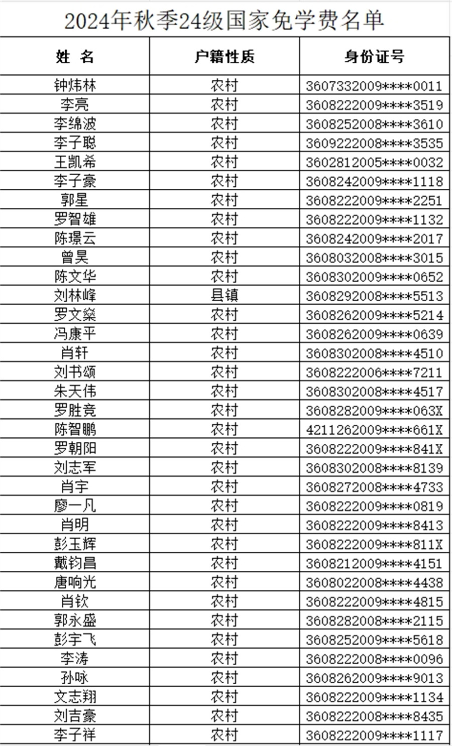 吉安市理工技工學(xué)校2024-2025學(xué)年上學(xué)期免學(xué)費(fèi)名單已公布,如有疑問請于公示日期內(nèi)向校資助中心反映。